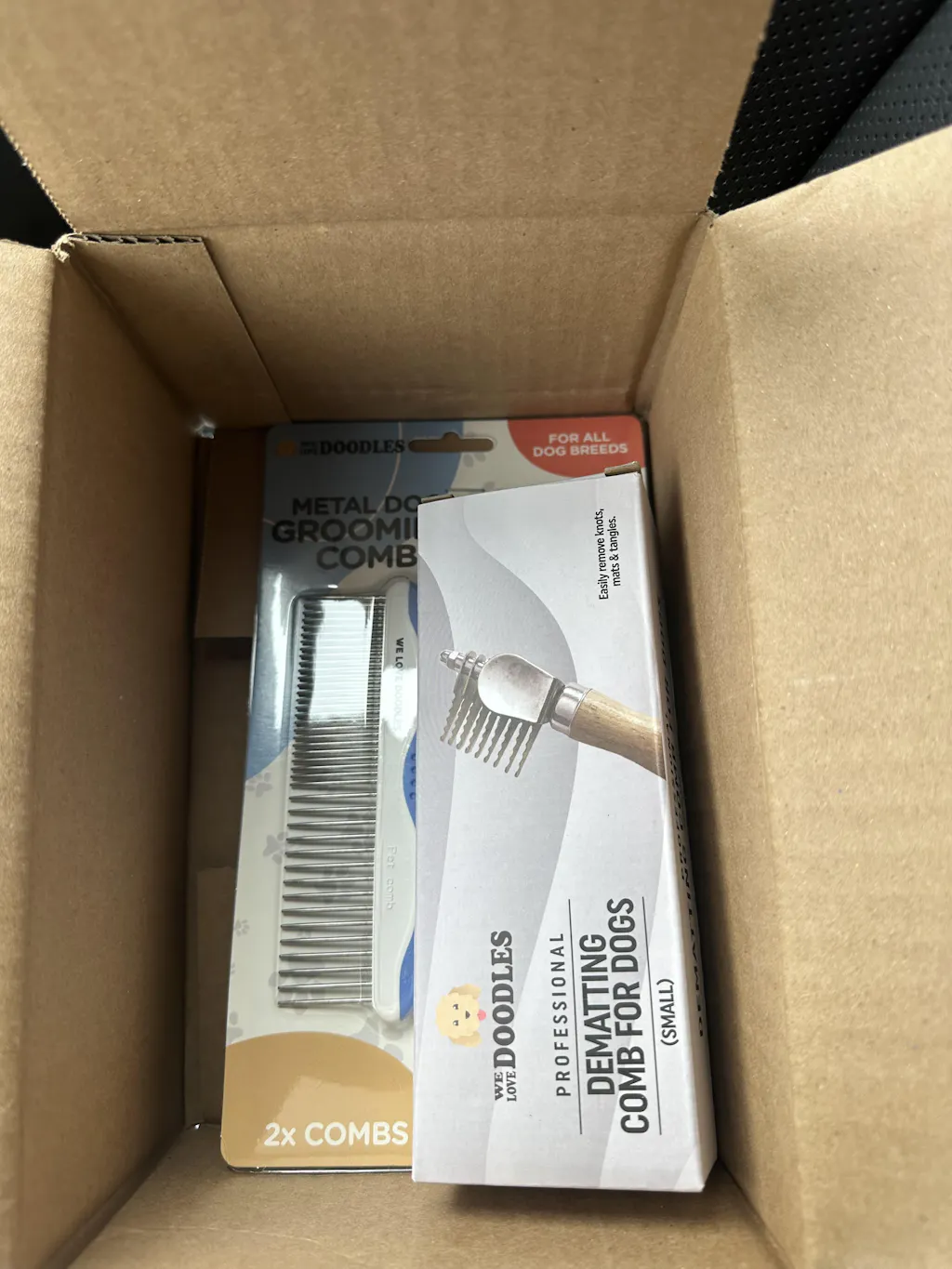 I really love these combs for my young doodle dog. With his love for outdoors, he often gets wet and muddy, especially after running around the backyard or at the dog park. Daily combing and brushing are essential to keeping his fur in top shape, and these combs make the process a breeze. The ergonomic grip makes them easy to handle, and the smooth teeth help minimize mats and tangles. Even my dog's groomer has complimented me on the excellent care I give to his fur since using these combs. They're truly an excellent product that I can't recommend enough.